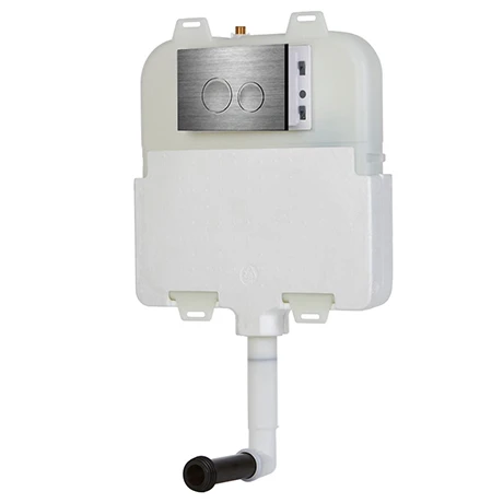 The sleek and streamlined Arezzo compact water saving pneumatic dual flush concealed cistern with round button brushed gunmetal grey flush plate, ideal for bathroom furniture and in wall installations. It has an insulated durable design, reducing the need for maintenance and is economical with water, providing a 3 or 6 Litre flush. It comes with cable operated flush plate for simple installation. For use with back to wall pans.