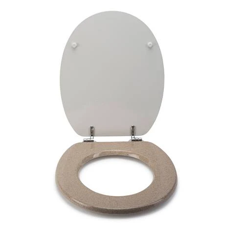 Made from quality moulded wood with a sandstone effect finish, this toilet seat features patented adjustable hinges with high strength adhesive pads to grip to the pan. Compatible with any standard UK toilet pan, there’s no need to worry about the seat not fitting or coming loose.