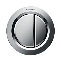 This Geberit Dual Flush Pneumatic Flush Button is designed for thin wall applications of 17 – 25mm. Manufactured from molded plastic and comes in a chrome finish. Can be combined with Geberit flush plates for single flush and stop-and-go flush or Geberit cover plate.