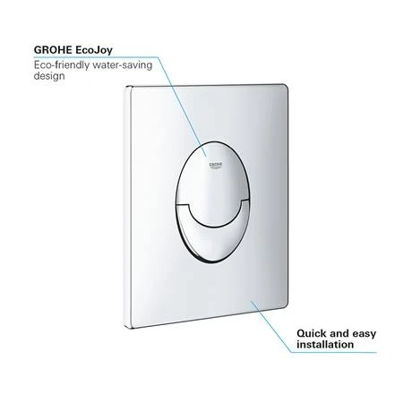 The Skate Cosmopolitan flush plate is made of ABS and finished in GROHE StarLight® easy clean chrome. Thanks to EasyConnect, you can easily mount the plate in no time while the Dual flush and the Start-Stop functions ensure easy operation. With the Dual flush, you can choose between a large or small flush and the Start-Stop technology allows you to prematurely stop the flushing by pressing the button again.