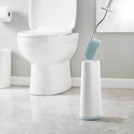 The Joseph Joseph Flex Smart toilet brush and holder features a flexible, D-shaped head that reaches all areas, even under the rim. Unlike conventional toilet brushes that hold dirt and liquid and with bristles that distort over time, the Flex Smart has widely spaced bristles that prevent dirt clogging, allowing liquid to drain quickly and minimising drips between cleaning and storing.