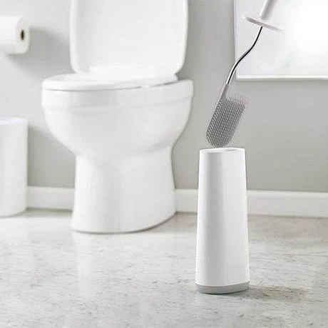 The Joseph Joseph Flex Smart toilet brush and holder features a flexible, D-shaped head that reaches all areas, even under the rim. Unlike conventional toilet brushes that hold dirt and liquid and with bristles that distort over time, the Flex Smart has widely spaced bristles that prevent dirt clogging, allowing liquid to drain quickly and minimising drips between cleaning and storing.