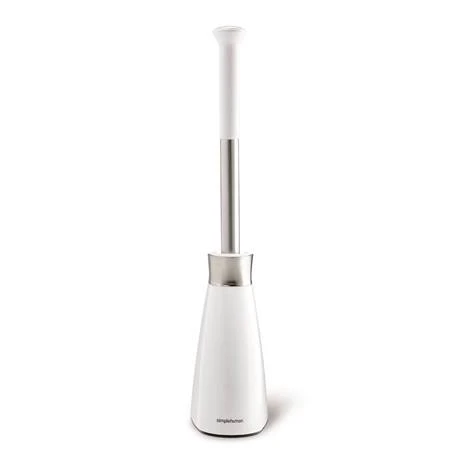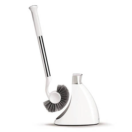 The simplehuman toilet brush and holder in white combines style with functionality. It’s unique crescent shaped brush head is designed to clean hard to reach areas in the toilet bowl. The holder conveniently stores the toilet brush when not in use and has a magnetic collar to secure the brush allowing you to transport it without worrying about drips.