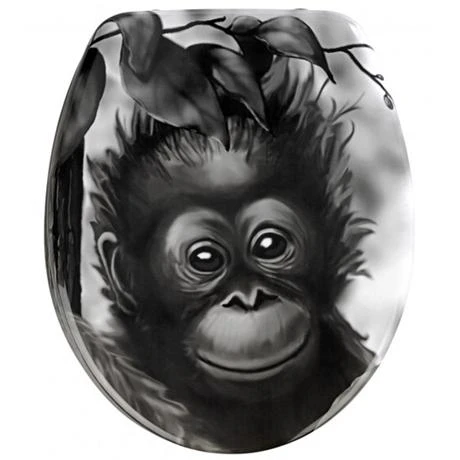 The Monkey Duroplast Toilet Seat from Wenko, made of high quality Duroplastic with a animal motif on and in the lid as well as on the ring.