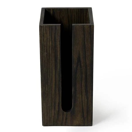 Never get caught short again with this toilet roll storage box. It features a slotted front panel to attractively display the rolls and easy to take out a roll when needed. Beautifully crafted from white oak and finished with a dark stain water resistant lacquer. The silicone feet stop it from slipping and prevents your floor from being scratched.